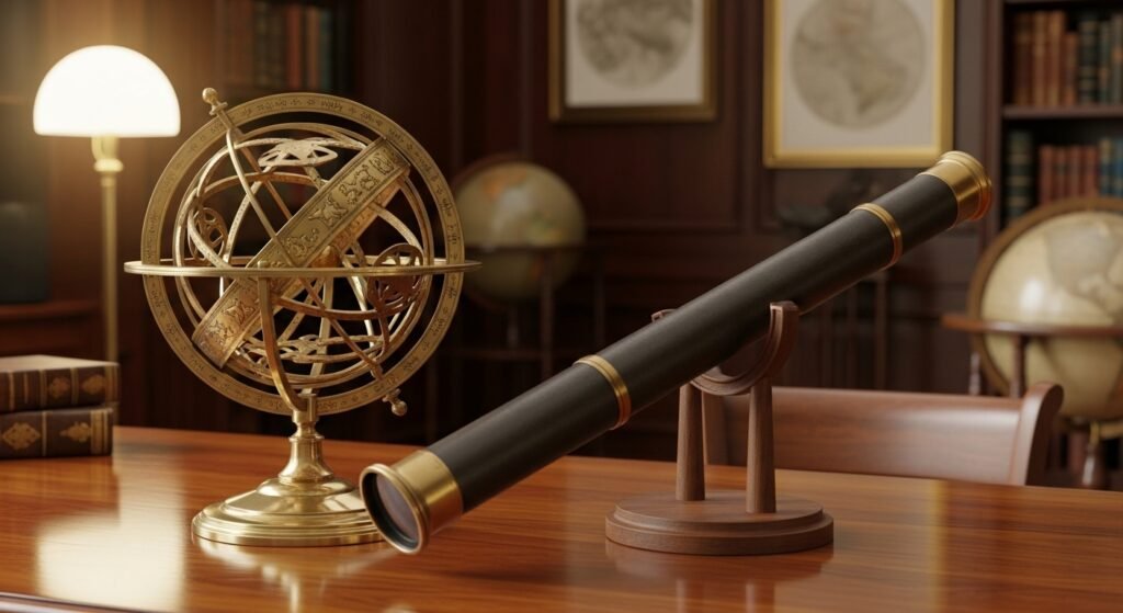 Scientific Brasses and other antique scientific instruments of various kinds are further displayed at the Museum of Science and Technology, Brussels . Scientific Brasses and other antique scientific instruments of all sorts are also shown at the Museum of Science and Technology, Brussels.The early scientific equipment, such as armillary spheres, telescopes, sextants and barometers, used in the 17th-19th century are valued because of the beauty of their engineering and their historical significance. Collected persons love to show them as conversation pieces and museums and collectors want the unusual or the well preserved specimen.