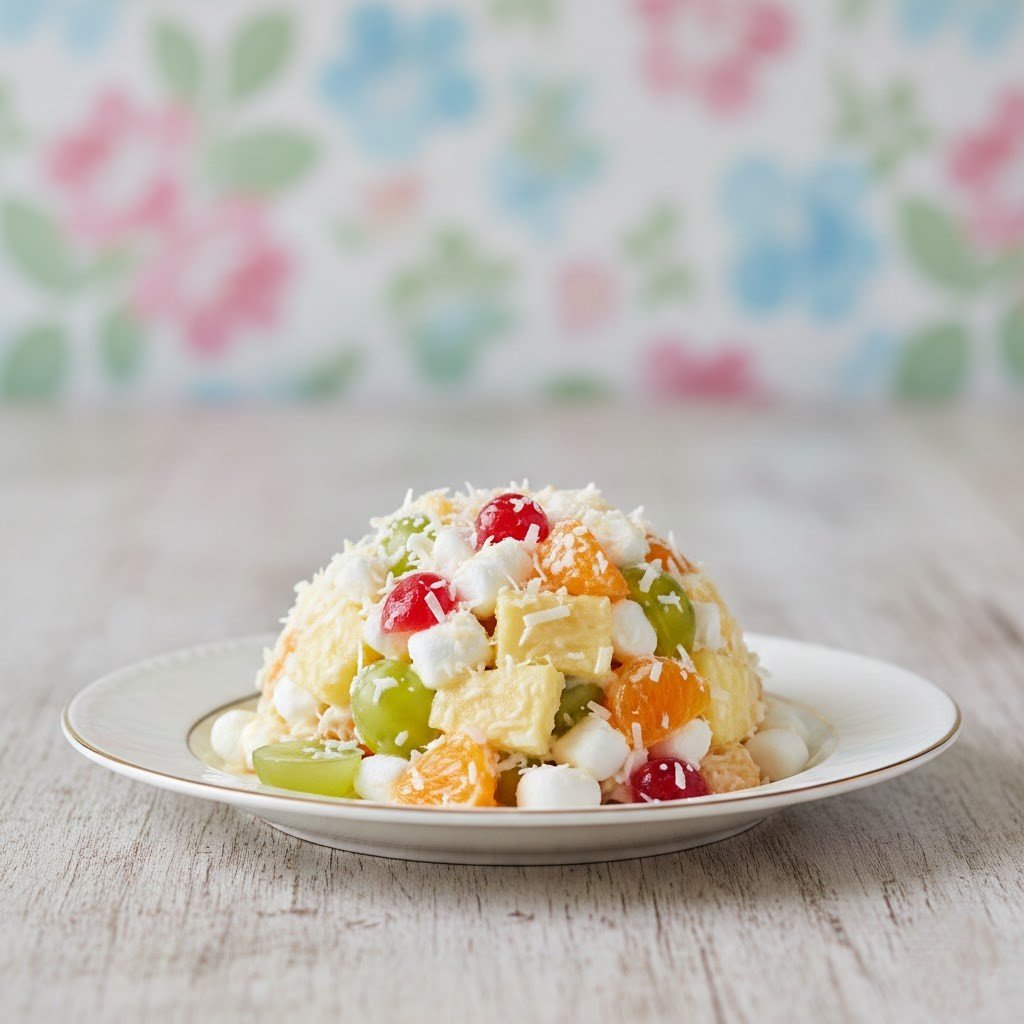 This dessert is a sweet salad being brought back as a nostalgic one. It is not as heavy as the older ones because of the lighter ingredients.