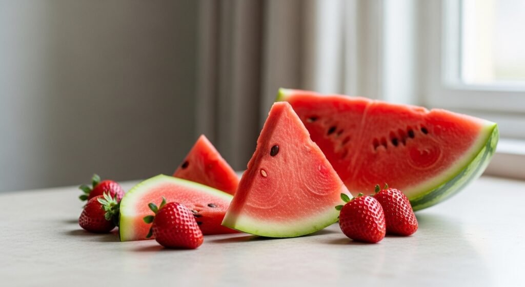 A slice of watermelon takes up space without adding much weight on your diet. When mixed with strawberries, something gentle happens – sweetness builds quietly. This blend fills the glass without overloading the body. Cravings get met, just not too fully.