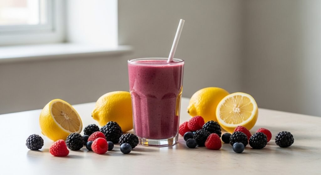 Bright lemon lifts the taste, cutting down on added sugars. Fresh berries bring fiber plus natural protection against cell damage. This blend feels light on the tongue, yet quietly helps manage hunger through balanced ingredients.