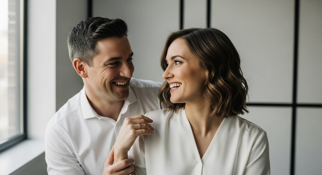 A quick word from you might curve her lips into a grin or nudge a chuckle. Not every remark you share holds laughter. It shows comfort, pull, how naturally things flow when they’re not heavy. Light moments stick around longer because of it.