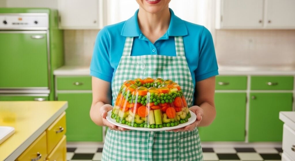 A rainbow in a mold – gelatin salads filled with veggies or fruit once brightened family gatherings. Now, people reach for raw bites instead; flavor without chew fades into memory.