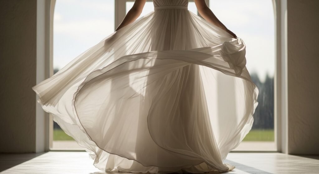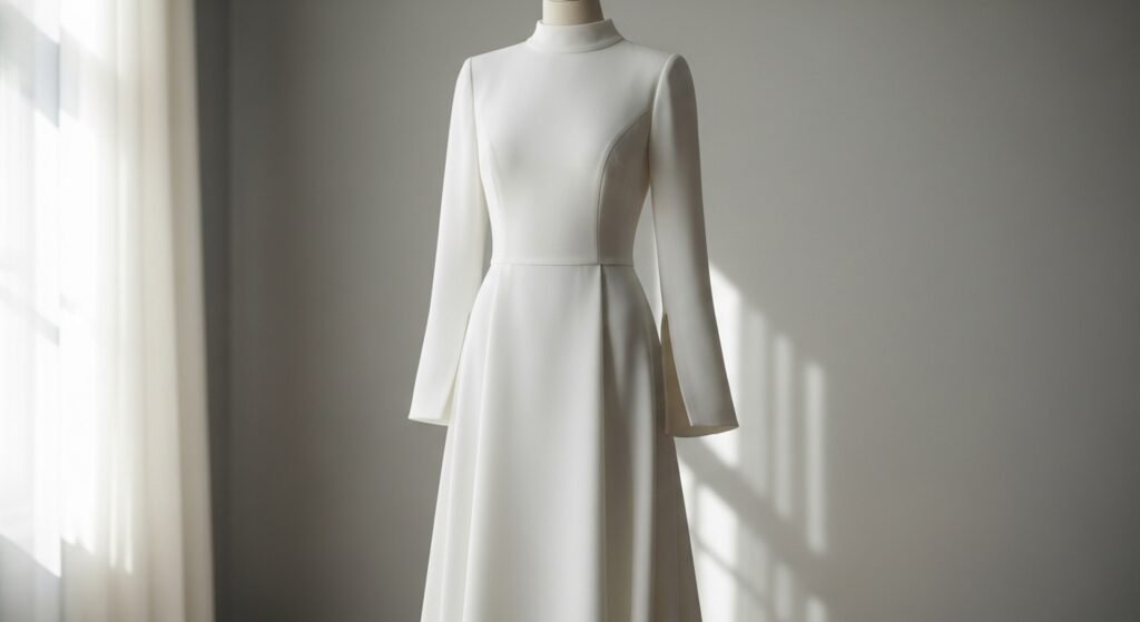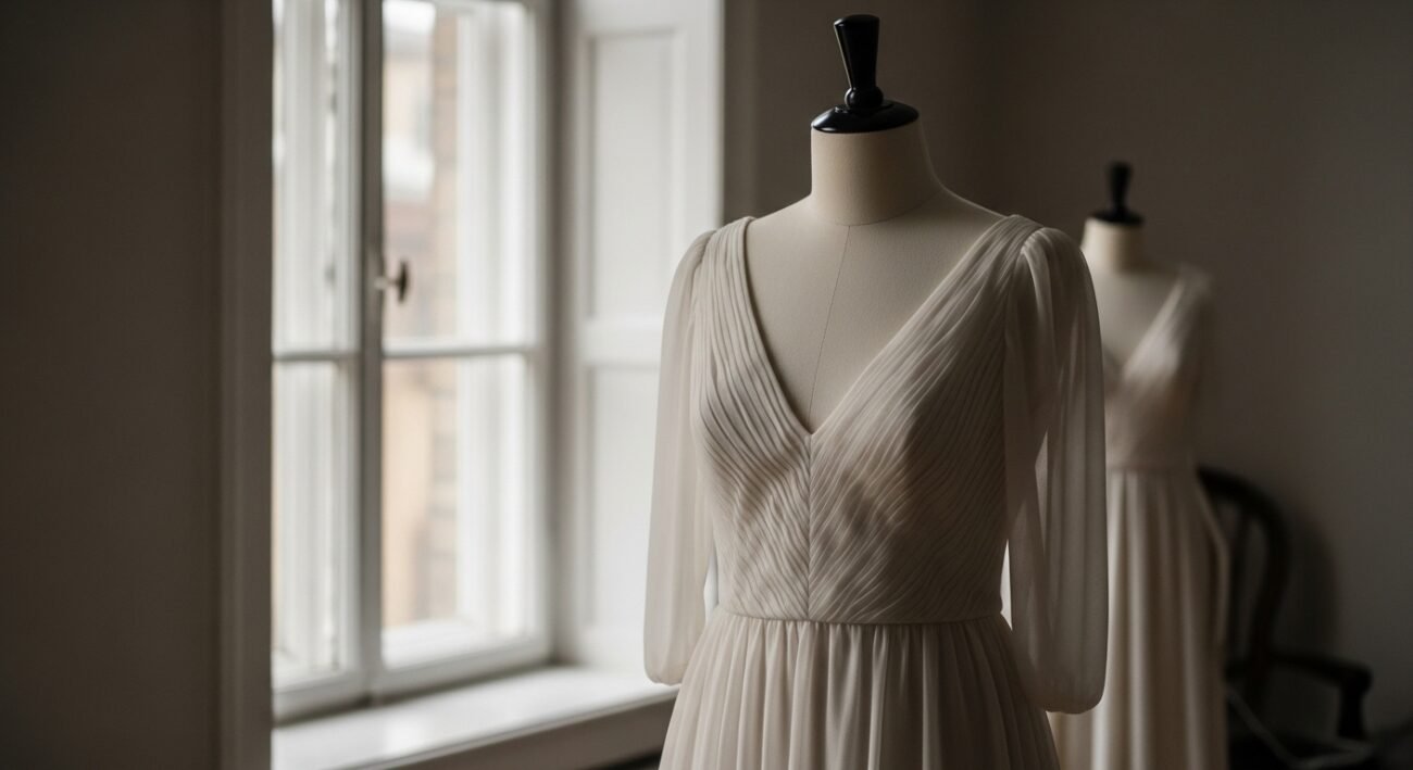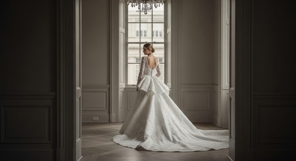 Shaped with care, this dress shifted the way wedding garments were made. Proportions mattered more when they made the person stand out, not vanish behind fabric.