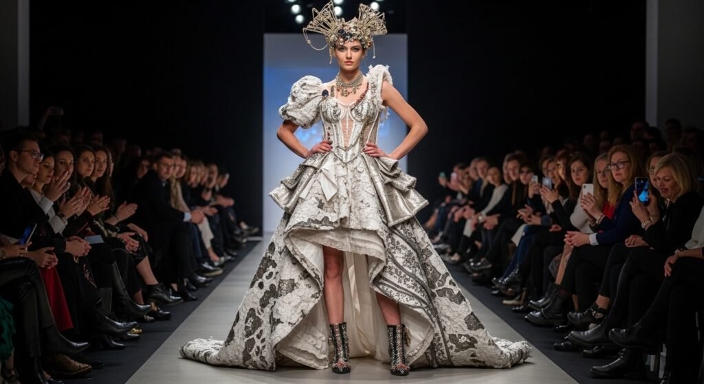 A sudden flare of fabric marked the dress, while sharp angles gave it strength. This mix brought back epic moments, sparking desire in those seeking a gown that shouts from across the room.