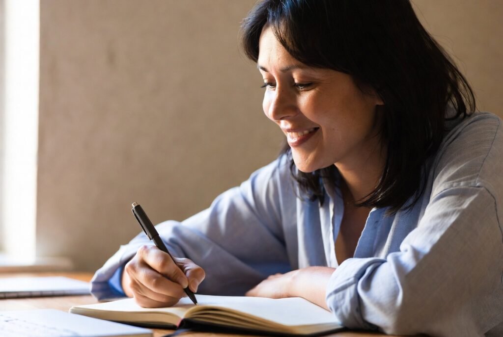 Entrying down three things they’re thankful for each day (or even mentally noting them) shifts focus from problems to positives. Forum users swear this tiny habit builds a calmer baseline over time, making it harder for negativity to stick.