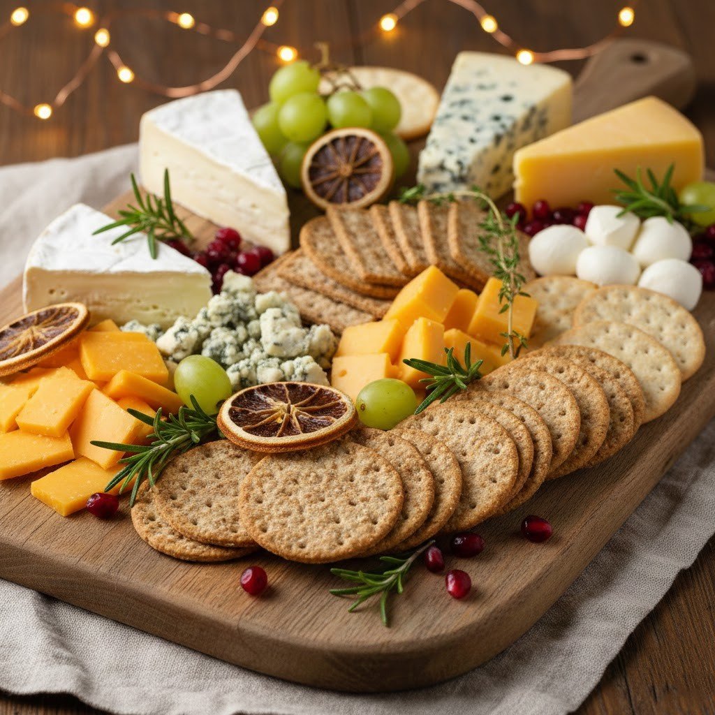 Crackers and cheese, plated together along with other things, is a nice and simple choice. It is more like adding fruits during the seasons can just elevate the whole setup.