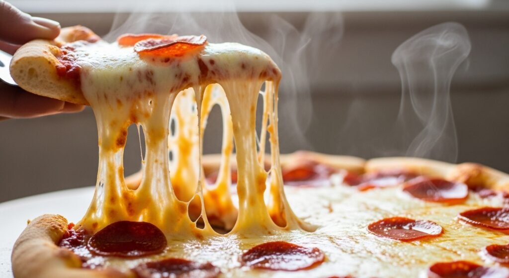 There are not too many food images that are as attractive as a long, lengthy cheese pull. It can be some slice of a single slice off a pizza or a fork of a plate of pasta, slowly rising, but no matter, that stretchy strand complements his plate of food and generates immediate anticipation. The movement conveys warmth, freshness, and extravagance, so the viewers take a break in scrolling and enjoy the view.