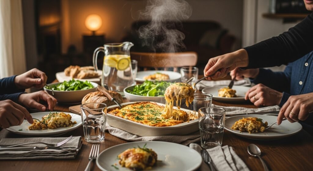 Plates covered with cheese usually represent coziness and comfort. During such times, there is a tendency for people to stick to foods that feel comfortable and invoke memories. Emotional comforting is provided even by looking at a bubbling casserole or a melting sandwich, although the image is projected on a screen, which supports the effectiveness of this technique.