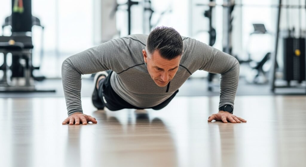 Pushups are also basic but challenging, whereby the body weight is utilized to engage the chest, shoulders, arms, and core. They can be modified to be accessible on knees or a bench, yet they will still be stimulating upper body strength and constant control.