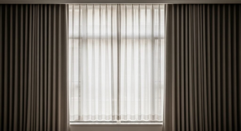 Large curtains or thermal curtains not only act as an insulator of the rooms, they also make the rooms look more personal. Select such fabrics as velvet and heavy linen of colour-neutral colour. The addition of sheer panel layers beneath would make the room look layered and refined, and would also give daylight through in enlightening the room.