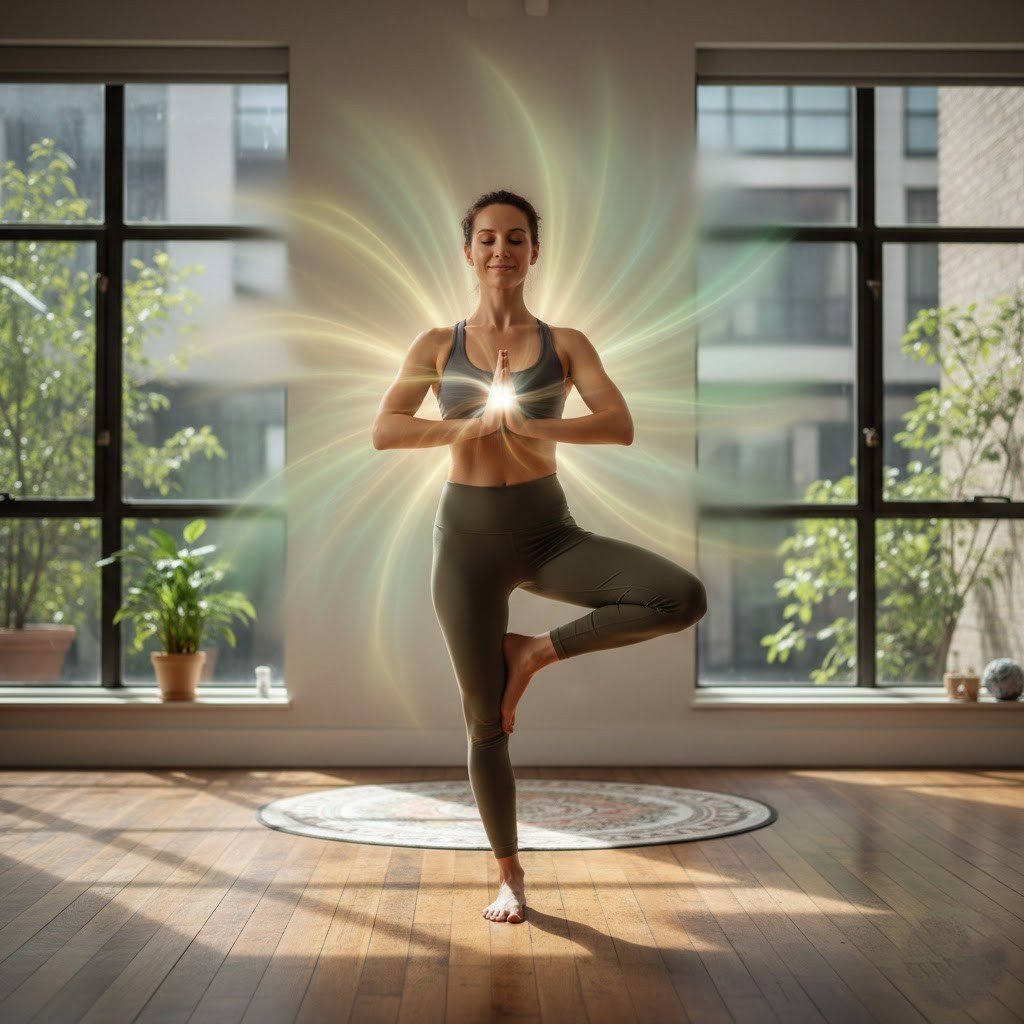 Breathing and holding poses trains you to stay in the moment. You will notice your concentration getting way better with less scrolling mindlessly, more getting stuff done without distractions pulling me away.