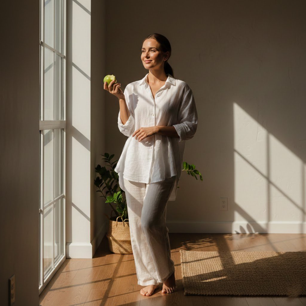 Better digestion, zero cravings, boundless energy, luminous skin, a sexier silhouette, and a constant playful mood that had me teasing myself (and the camera) nonstop. Apples didn’t just keep the doctor away; they turned me into a walking, talking embodiment of temptation itself.