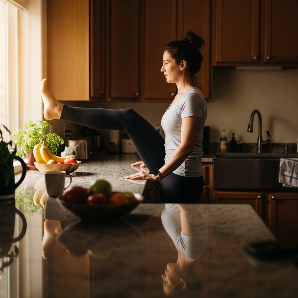 One can do the standing calf raises with the help of a counter to stabilize the lower legs without attracting too much attention. This simple motion may assist with the support of the ankle and could be included in daily activities in the kitchen.