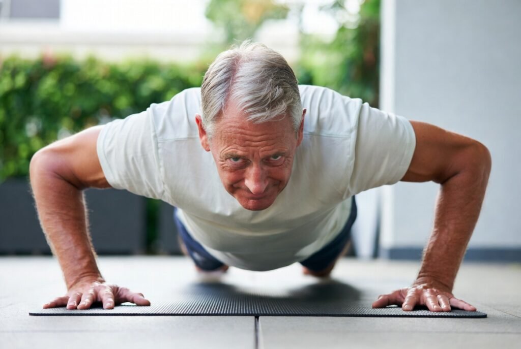 At the beginning of the fifties, push-ups can continue to be a commodity of a healthy routine, provided one takes it slowly. Becoming accustomed to rhythm and form can be more important than numbers and make movements supportive rather than challenging.