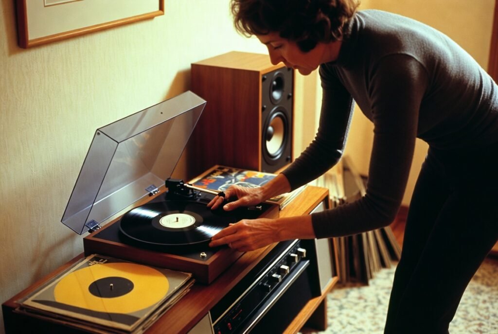At home a usual source of music was provided by record players. Placing the needle carefully and flipping records was a ritual, and the touching nature of albums made the music seem more deliberate and intimate.