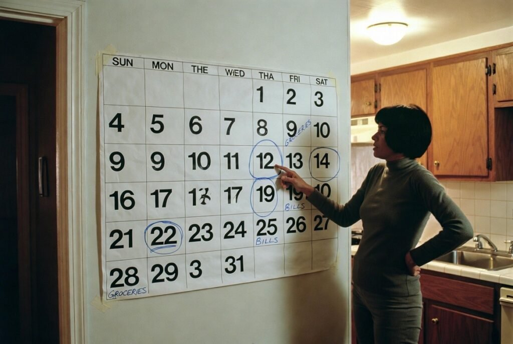 The paper calendars were available in the kitchens or corridors with handwritten notes. Birthdays, appointments, and reminders are all seen by all people and this saves the family lives of being organized without computerized alerts and screens.