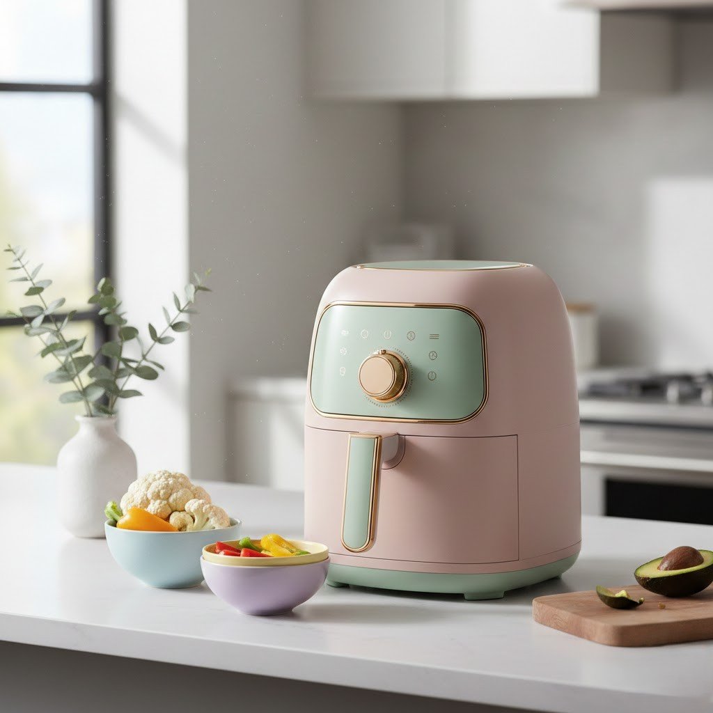 Drew’s line looks adorable on the counter (those pastel colors!), but it’s not just pretty – air fries evenly, toasts fast, and the convection baking turned out great sheet-pan meals. Easy controls, good size for most kitchens, and the price is friendly. Fun one if you want style points too.