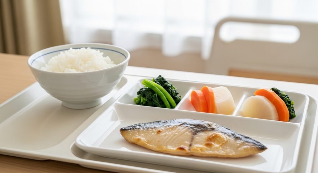 Japanese hospitals focus on light, balanced meals designed to aid digestion. Patients are often served rice, grilled fish, miso soup, and small vegetable sides. Presentation matters, and portions are modest, emphasizing nourishment without overwhelming the body.