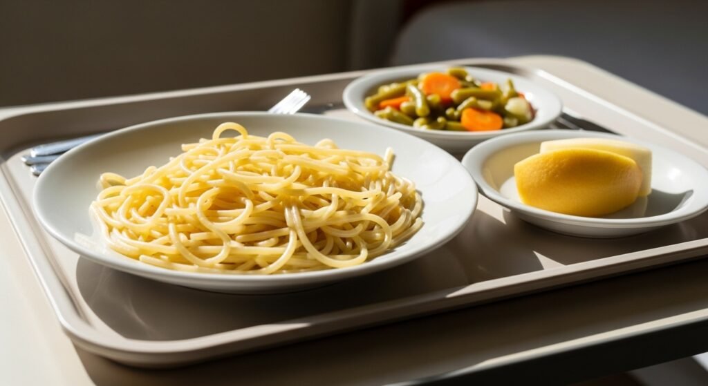 Italian hospitals commonly serve pasta, soups, vegetables, and fruit. Meals are straightforward but familiar, aiming to feel comforting rather than indulgent. Olive oil, simple sauces, and warm dishes help patients feel cared for during recovery.