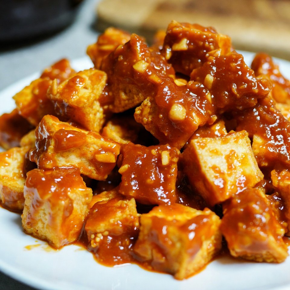 The ginger garlic topping on this dish makes it so tasty. It makes the tofu taste rich and not plain. That is why it is so popular online right now because it tastes really awesome.