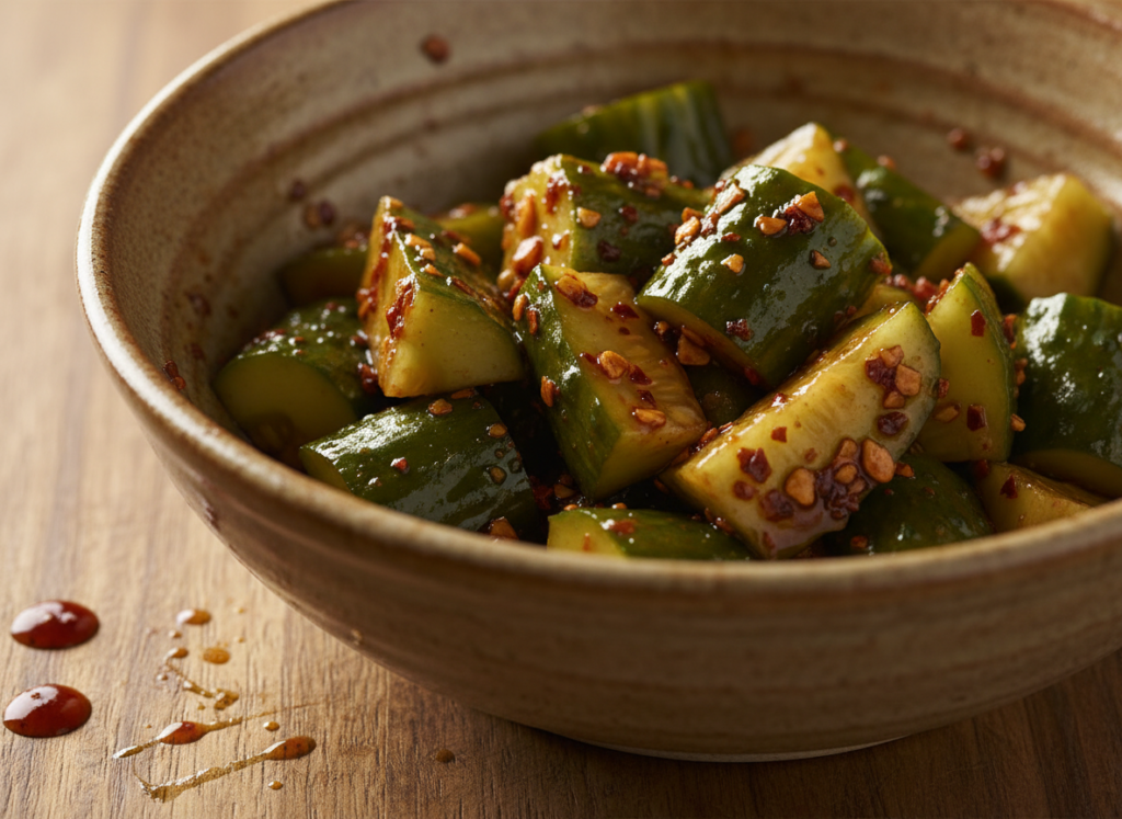 The outcome is a perfectly crisp, juicy bite that is garlicky and sesame-laden, and with a whisper of heat. It’s refreshing yet bold which is perfect as a side for grilled meats, rice bowls, or just straight from the bowl. Forum fans call it “dangerously good” and “impossible to stop eating.”