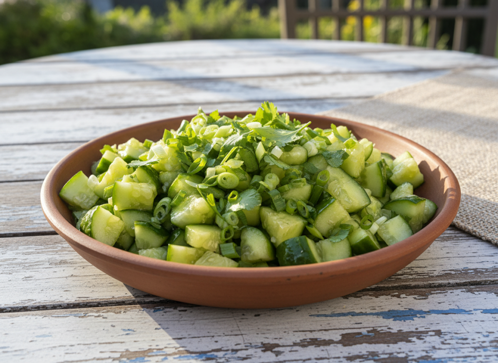 After salting and draining, some people dip the cucumber slices into an ice bath for 2–3 minutes. This procedure not only brings back the maximum crispness but also cools the salad to an even more refreshing level. A little extra step, but die-hard fans swear it takes the texture to another level.